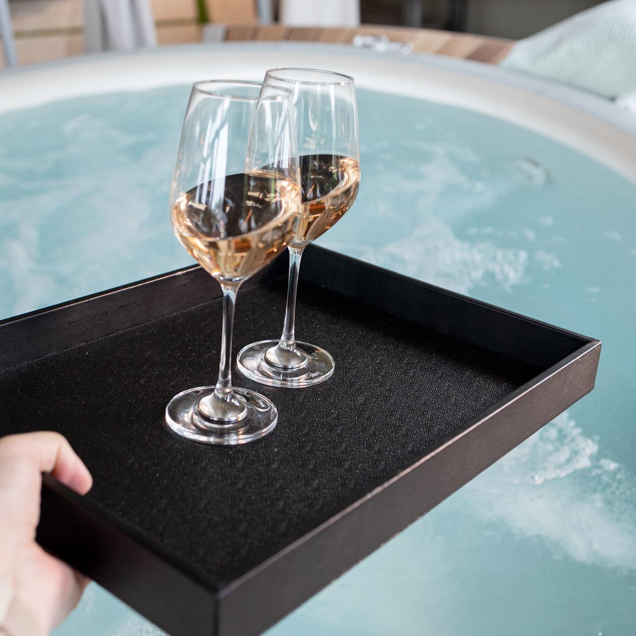 Das Designer-Tablett im schwarzen Leder-Look ist die perfekte Ergänzung zu Ihrem Magnet-Geschirr. Dank der integrierten Metall-Schicht werden Magnet-Gläser und -Geschirr sicher fixiert, sodass Sie mühelos und rutschfest servieren können. Eine spezielle Anti-Rutsch-Oberfläche sorgt für zusätzlichen Halt und sicheres Tragen.